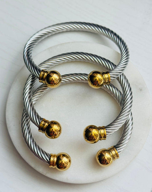 Élan Bold Silver Open Bangle- Stainless Steel Unisex Cuff Bracelet