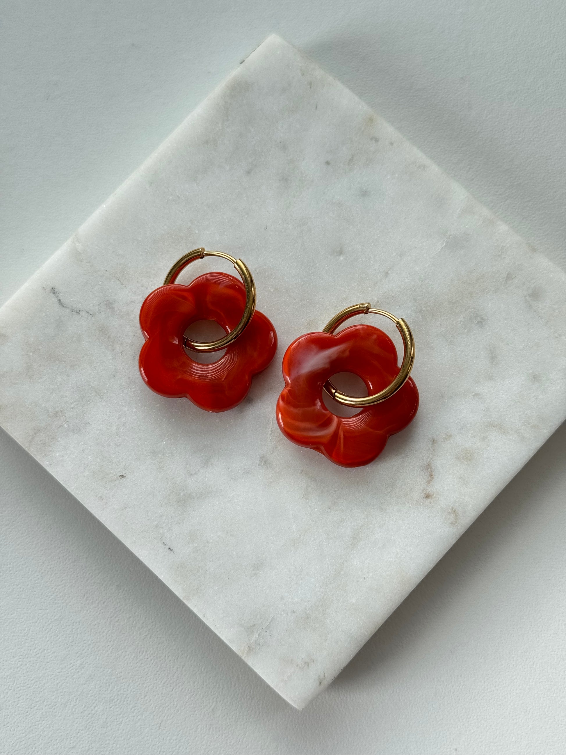 Material acero inoxidable y acrílico. La margarita es removible que puedes usar los aretes solitos.