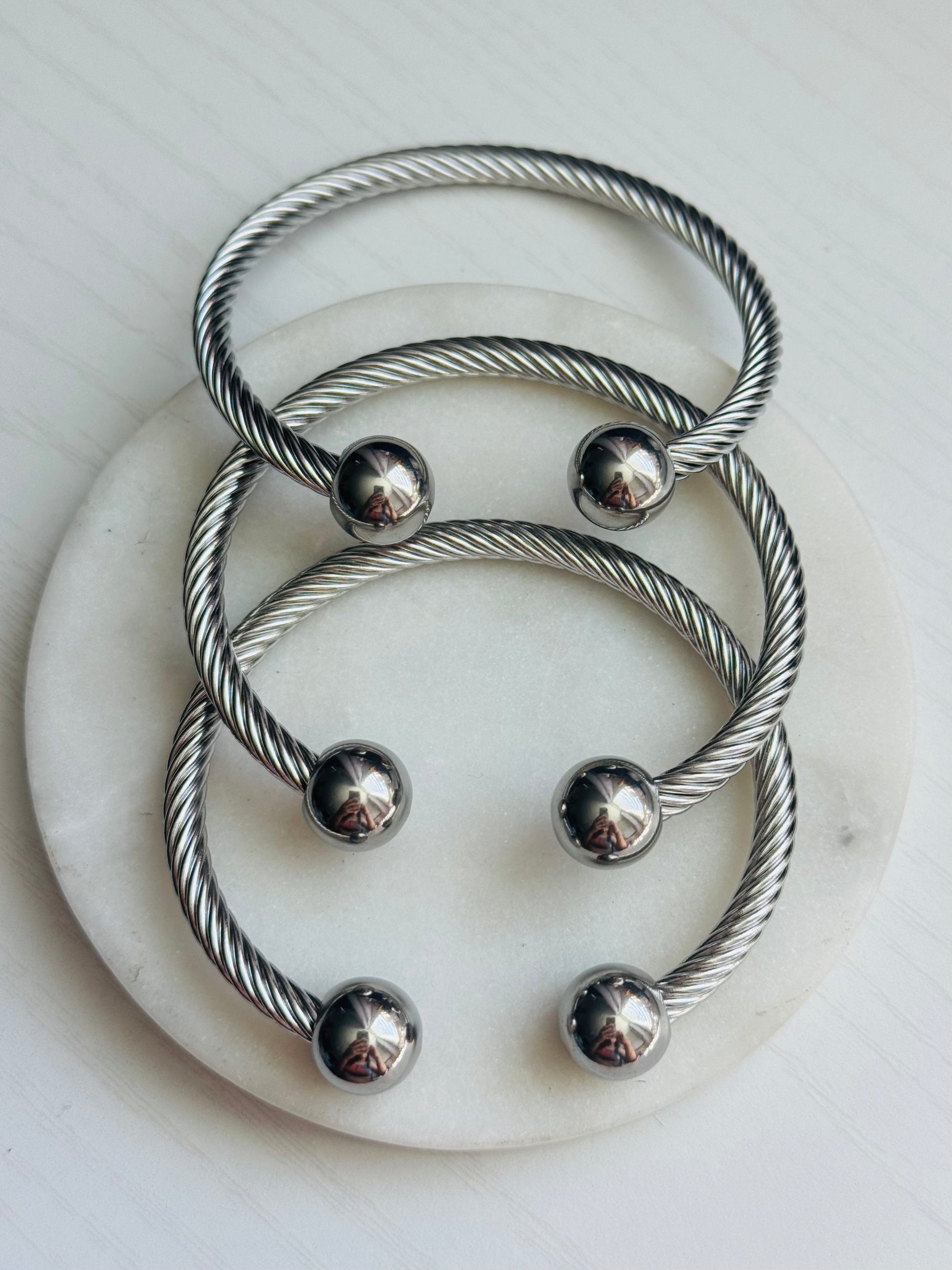Élan Bold Silver Open Bangle- Stainless Steel Unisex Cuff Bracelet