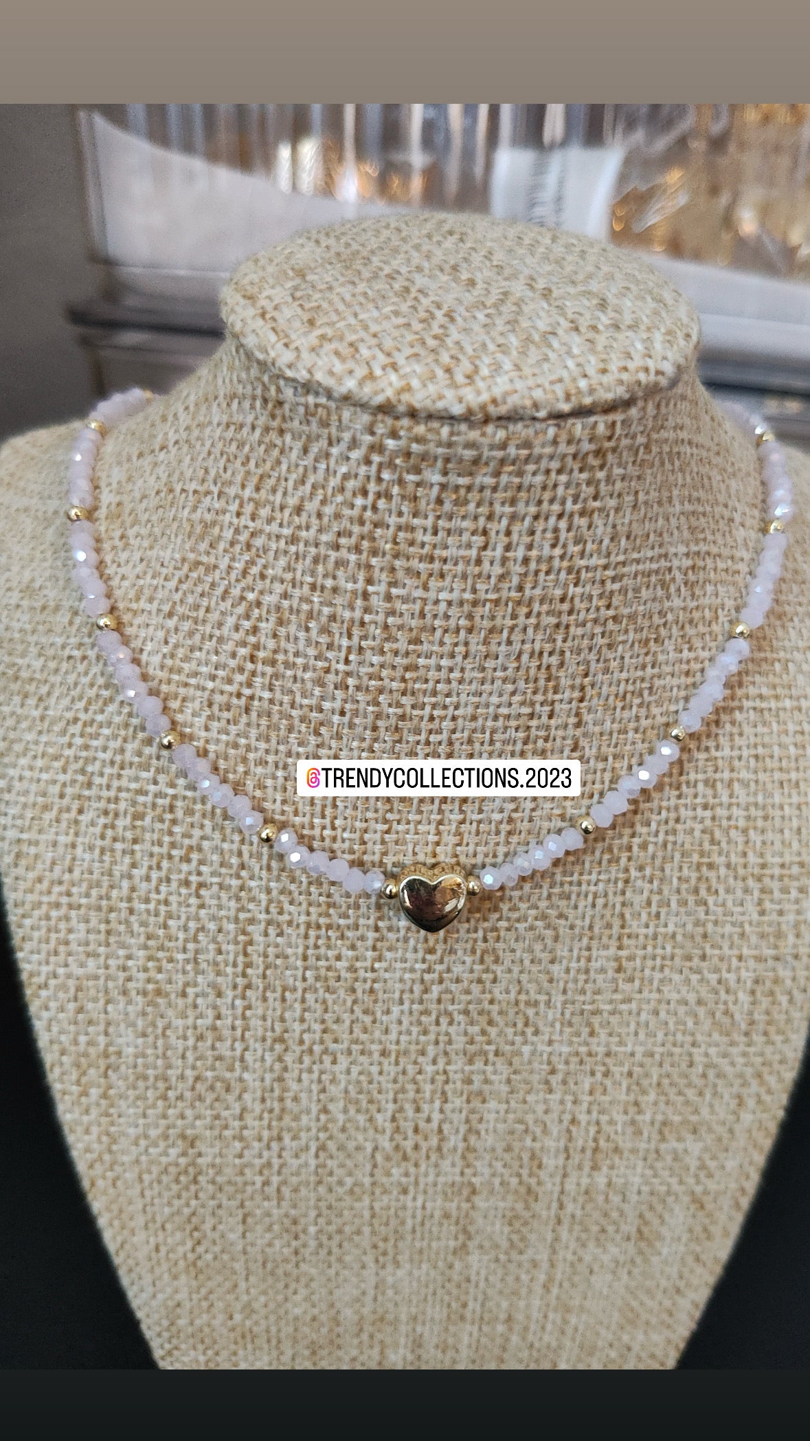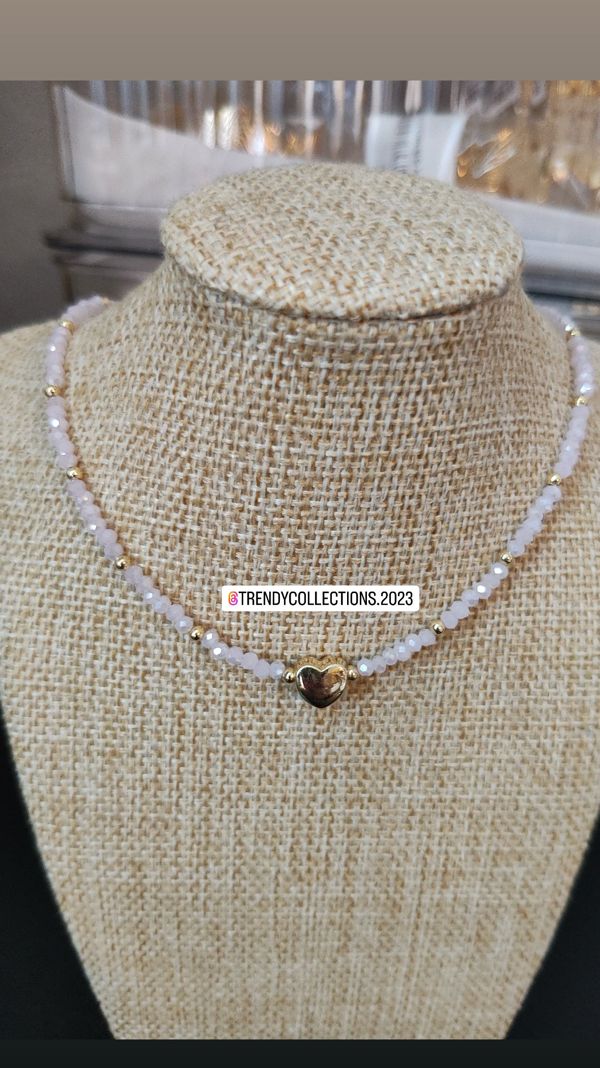 Collar de cuentas en color rosa pálido y detalles dorado. Material: Acero inoxidable.