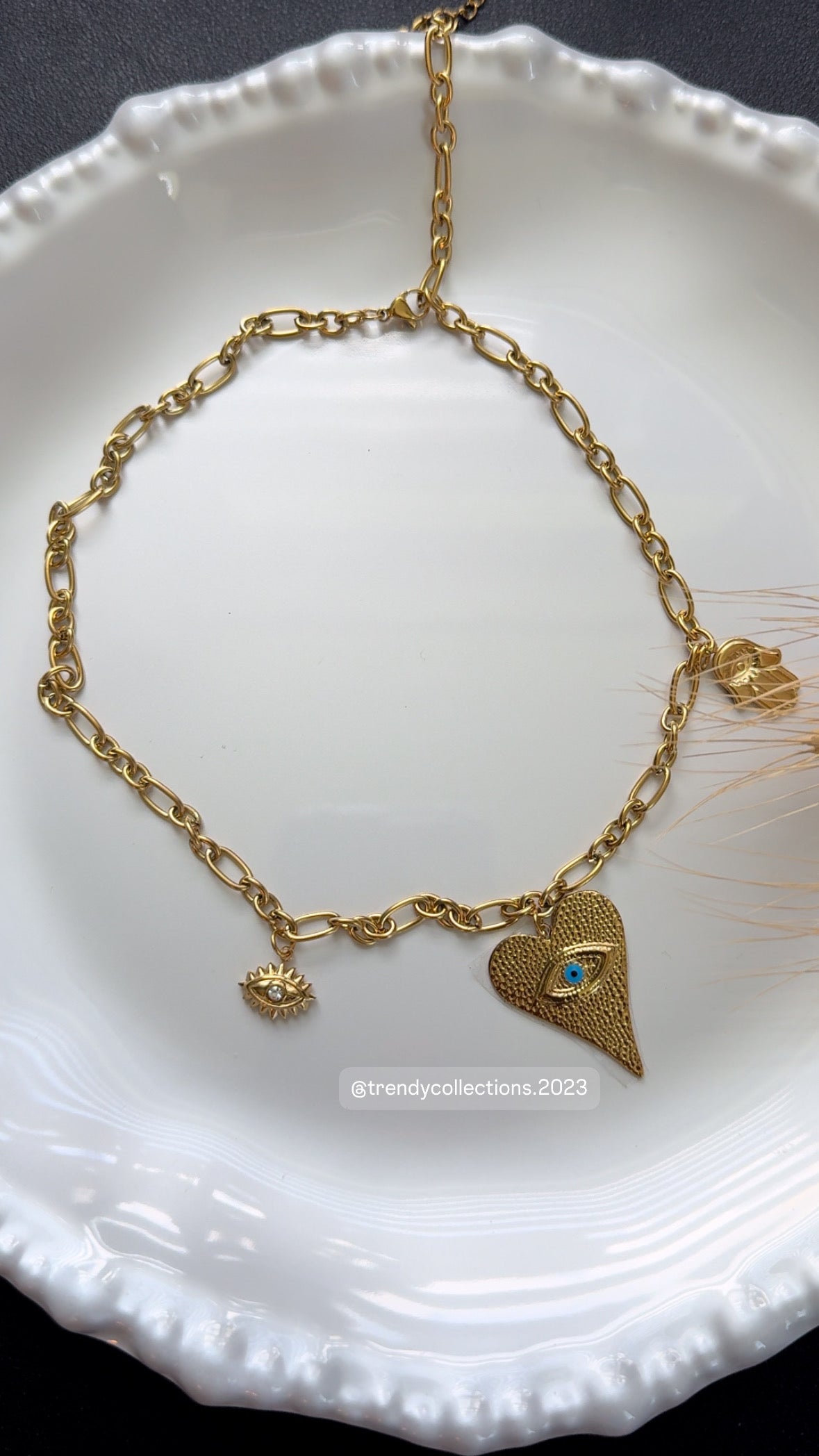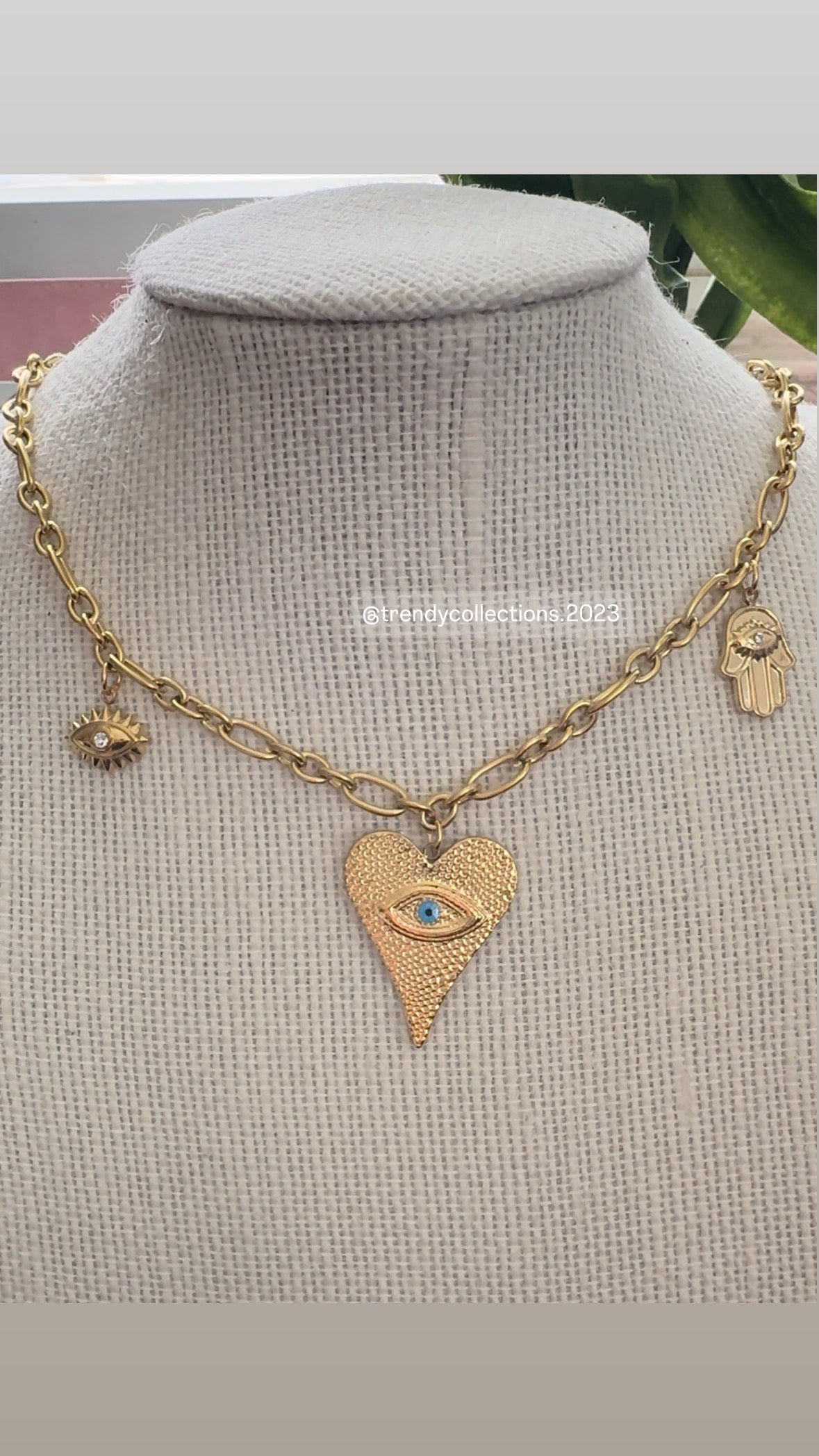 Cuello ajustable en acero inoxidable con dijes. Medida 18" y con extensor a 21".