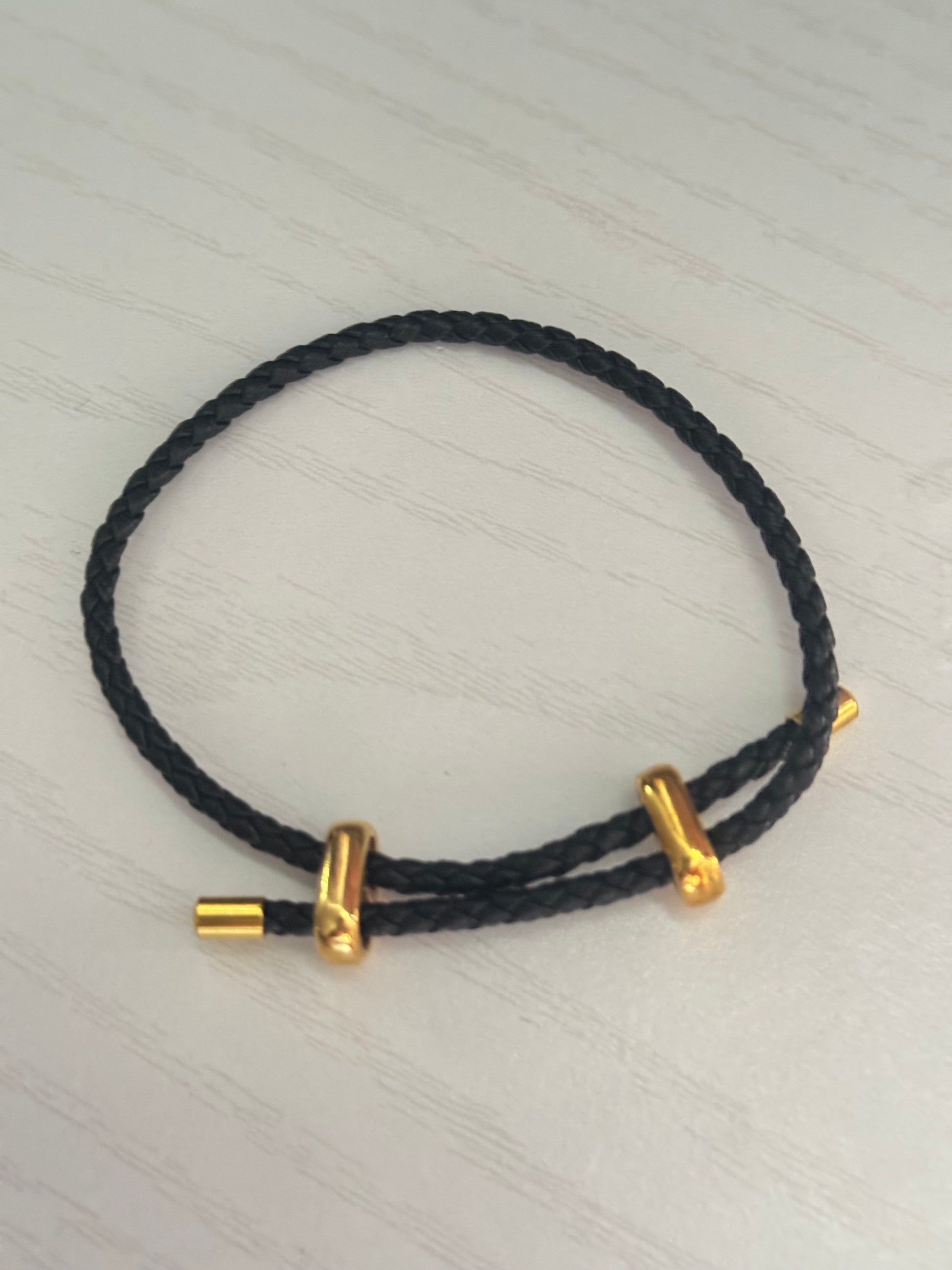 Our Adjustable Leather Charm Bracelet blends modern edge with everyday versatility. Crafted with durable leather and finished with an 18K gold-plated stainless steel closure, this piece is designed for effortless styling.