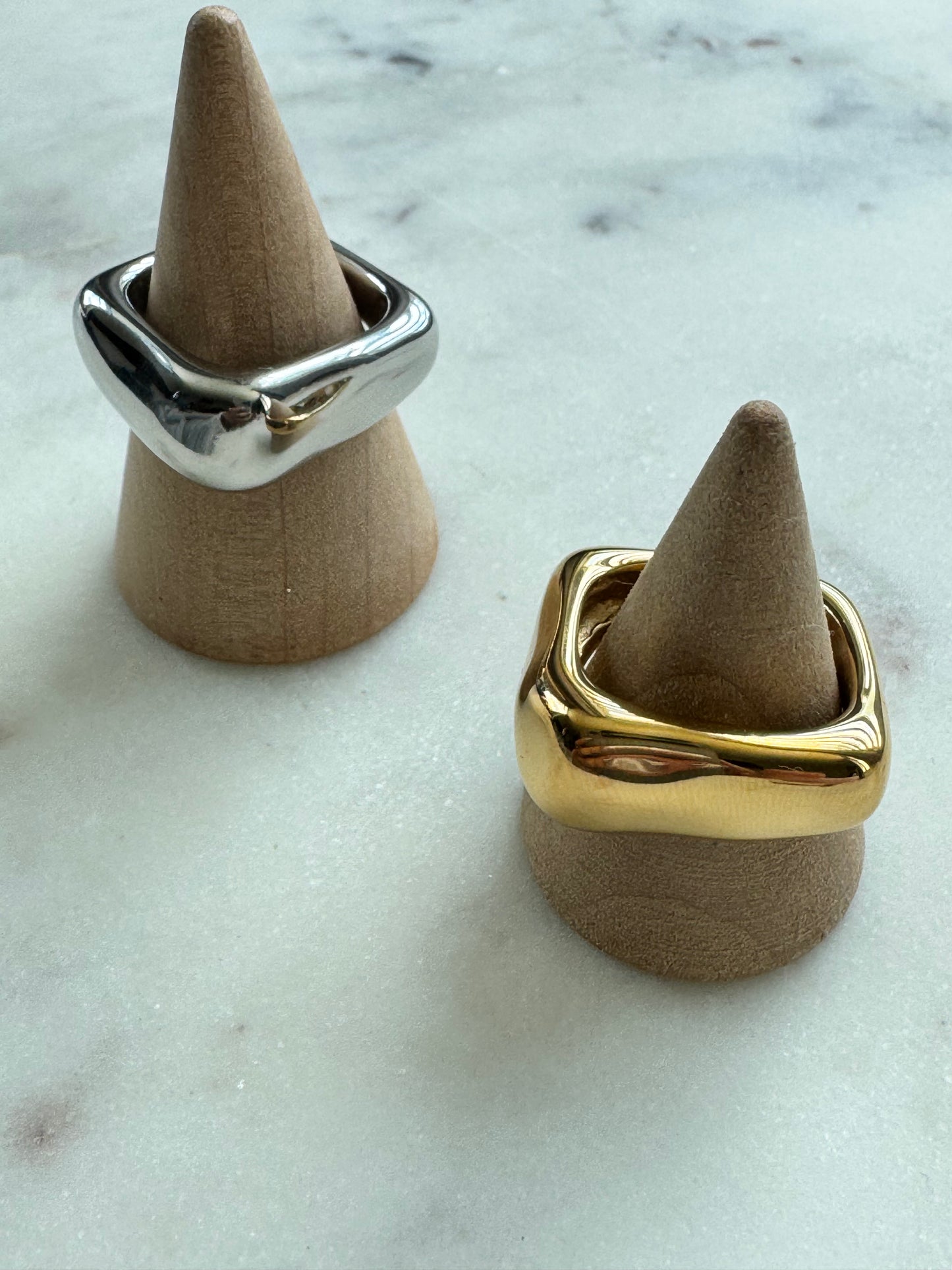 Sortija en stainless steel. Disponible en plateado y color oro.