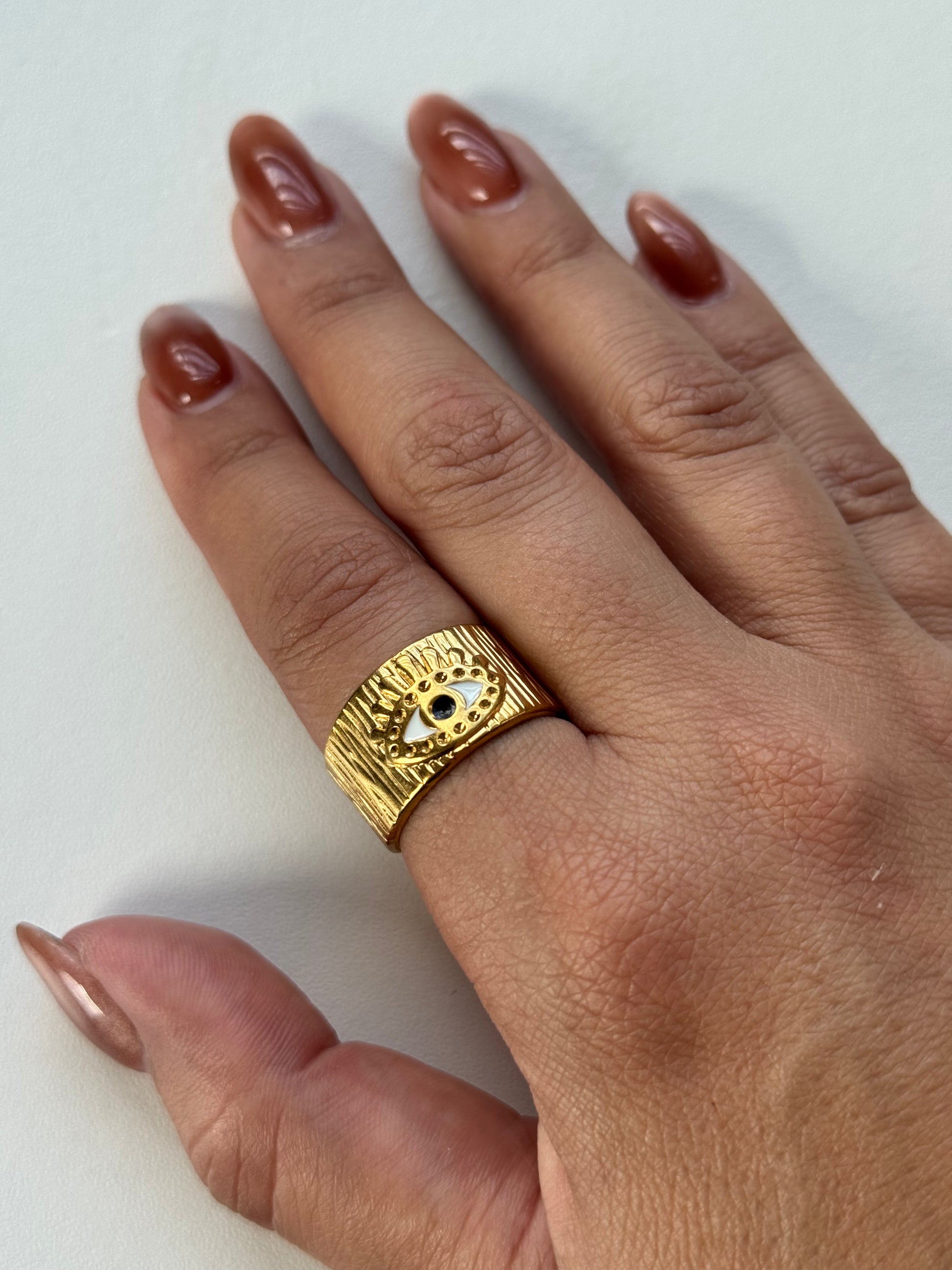 Stainless steel, 18k gold-plated one size ring.